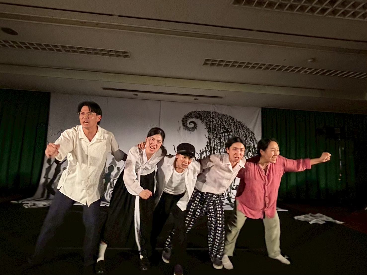 - ・とてもすばらしかった。構成もストーリーが伝わりやすくて良かったと思う。この劇を通じて阪神教育闘争の事をはじめて知り、今なお続く日本の在日コリアンに対する差別の歴史であるーを思った。在日の差別、抑圧が強まる今、この劇をした事の意義はとても大きい。